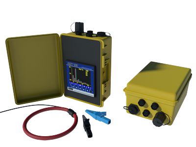 - Medição da potência ativa, reativa e aparente, fator de distorção harmónica, harmónicos de corrente e tensão, frequência.
